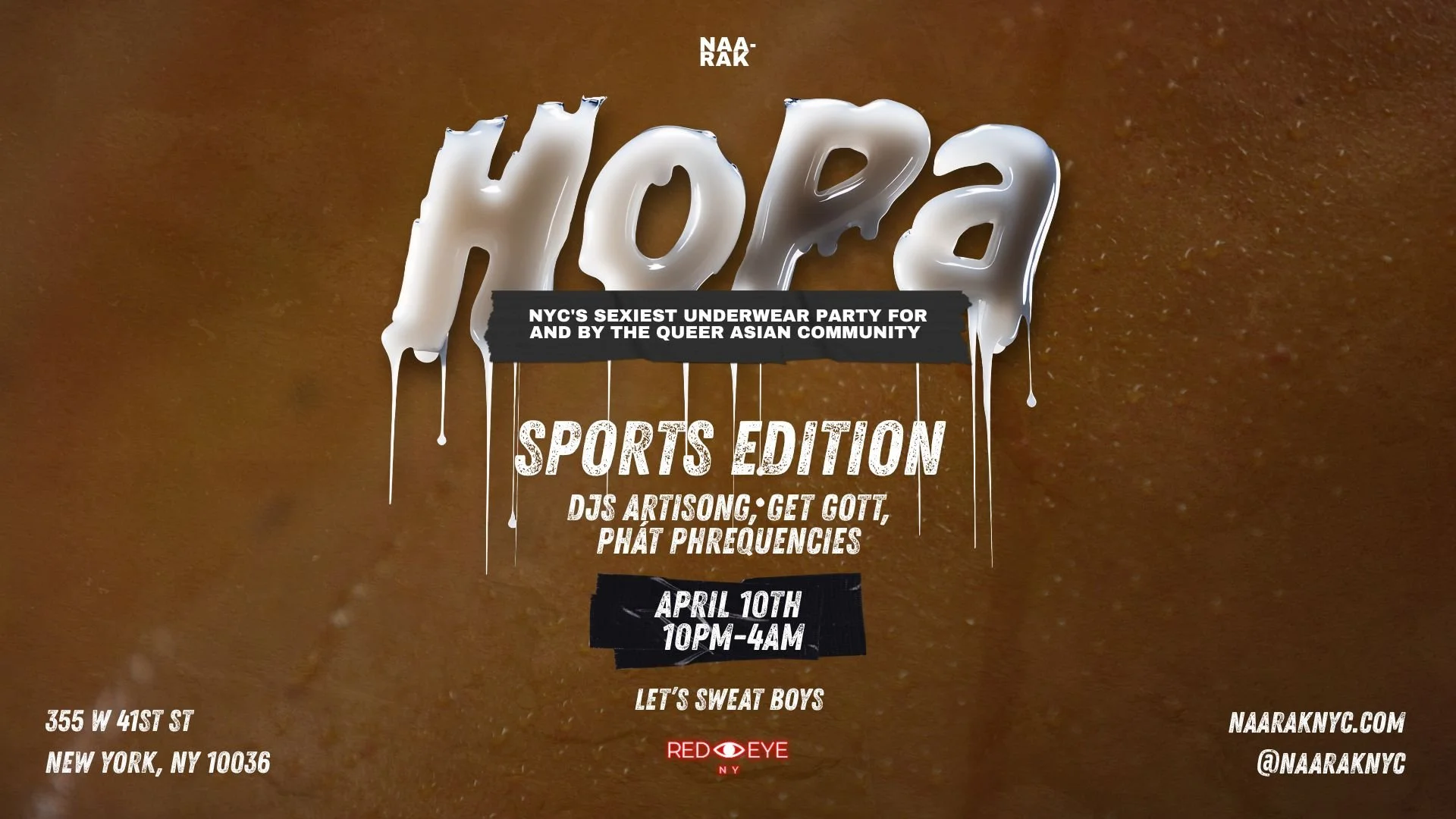 HoPa is a sexy underwear party for and by the Queer Asian community. It’s a safe space for us to bare it all and dance the night away. We welcome everyone to Naarak events, however given the nature of HoPa, we especially ask attendees to respect who this party is intended for If you’re attending, engage with the community in a respectful way. We reserve the right to remove individuals who do not do so.