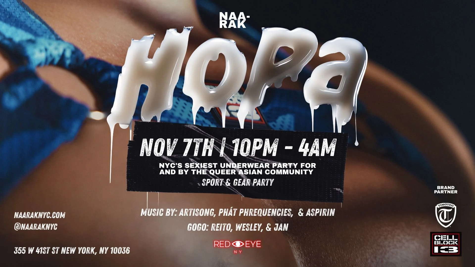 HoPa is a sexy underwear party for and by the Queer Asian community. It’s a safe space for us to bare it all and dance the night away. We welcome everyone to Naarak events, however given the nature of HoPa, we especially ask attendees to respect who this party is intended for If you’re attending, engage with the community in a respectful way. We reserve the right to remove individuals who do not do so.